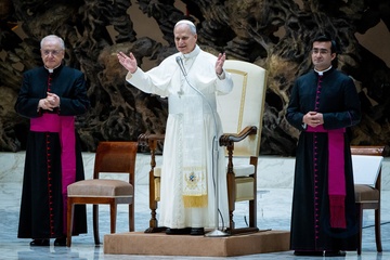 Pope Leo XIV leads his traditional Wednesday General Audience in Paul VI Audience Hall in Vatican City, Vatican, on 14 January 2026.