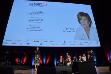Jane Fonda w spodniach w kratke szaleje na 10 Festival Lumiere w Lyon