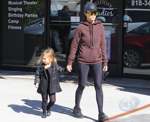 Rita Ora w garniturze i koszuli w paski na dworcu