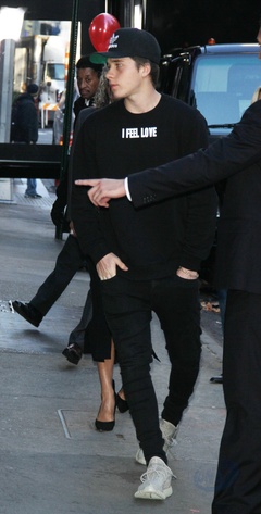 Pharrell Williams w maseczce antysmogowej, z duza torba zakupowa CHANEL