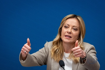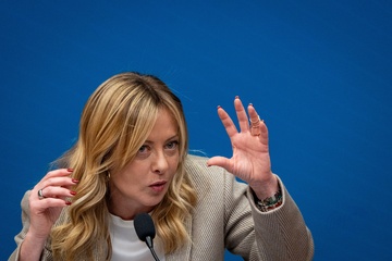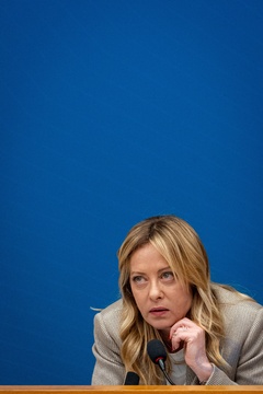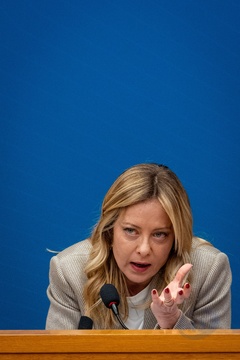 Italian Prime Minister Giorgia Meloni attends the annual press conference at the Chamber of Deputies in Rome, Italy, on 09 January 2026.