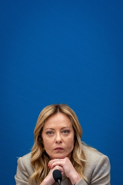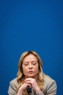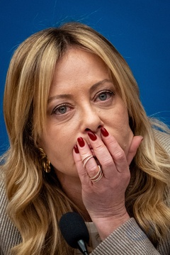 Italian Prime Minister Giorgia Meloni attends the annual press conference at the Chamber of Deputies in Rome, Italy, on 09 January 2026. 100