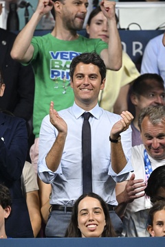 Les célébrités assistent à la victoire du français Félix Lebrun en quart de finale des épreuves de tennis de table lors des Jeux Olympiques de Paris 2024 (JO) à l'Arena Paris Sud