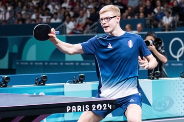 Les frères Lebrun et Simon Gauzy remportent la médaille de bronze lors de la finale de tennis de table par équipe aux Jeux Olympiques de Paris2024 (JO)