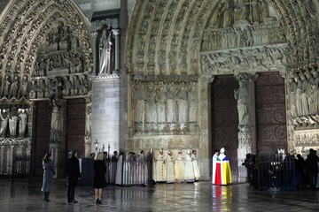 Przybycie na ceremonię ponownego otwarcia katedry Notre-Dame de Paris