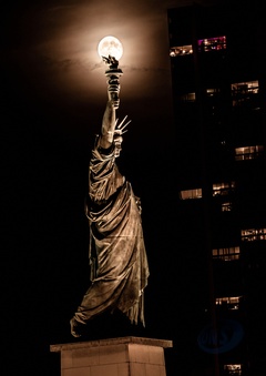 Archive - Illustration de pleine lune de 2024 (pleine lune du Loup) qui illumine le ciel de la ville lumière Paris