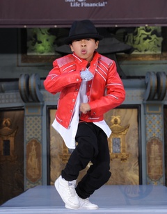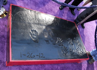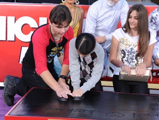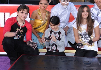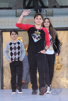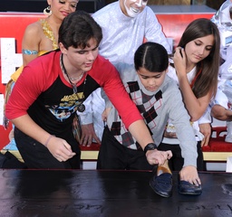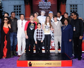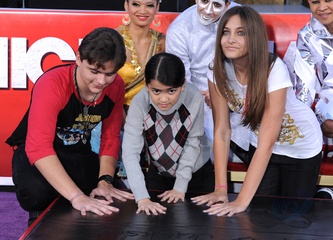 Dzieci Michaela Jacksona i jego przyjaciele podczas imprezy upamietniajacej muzyka w Grauman's Chinese Theatre, Hollywood
