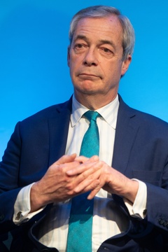 Nigel FarageKonferencja prasowa Reform UK na temat gospodarki i energii odnawialnej – 22 Bishopsgate, Londyn, Wielka Brytania