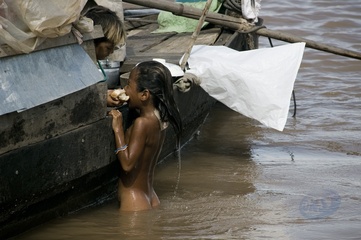 ludzie zyjacy na rzece Mekong w lodziach w Phom Penh
