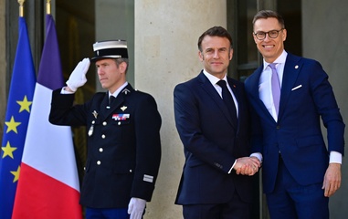 Emmanuel Macron, Prezydent Republiki Francuskiej, wita głowy państw przed szczytem „Koalicji Chętnych” na rzecz Ukrainy w Pałacu Elizejskim w Paryżu 145
