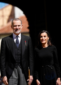 Król Hiszpanii Filip VI i królowa Letizia przybywają na uroczystość wręczenia Nagrody Cervantesa na Uniwersytecie Alcalá pod Madrytem
