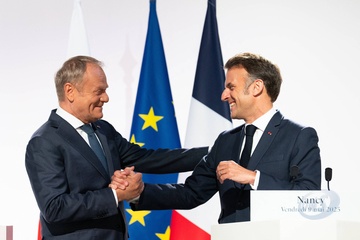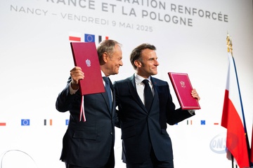 Emmanuel Macron (président de la République Française) et Donald Tusk, Premier ministre de Pologne, ont signé le traité de Nancy, à l'occasion de la Journée de l'Europe