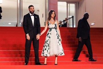 152 / 5 000 Karim Benzema i jego partnerka Lyna Khoudri przy wejściu na projekcję filmu „13 dni, 13 nocy” na 78. Międzynarodowym Festiwalu Filmowym w Cannes 68
