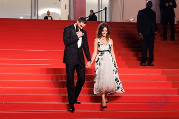 B - Karim Benzema et sa compagne Lyna Khoudri à la descente des marches du film « 13 jours 13 nuits » lors du 78ème Festival International du Film de Cannes