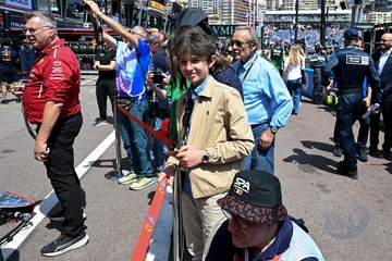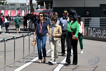 Charlotte Casiraghi et son fils Raphaël Elmaleh dans les paddocks la veille du Grand Prix de Formule 1 (F1) de Monaco