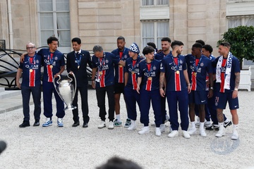 Les célébrités arrivent à la réception organisée en l'honneur des joueurs du PSG (Champions d'Europe 2025) à l'Elysée