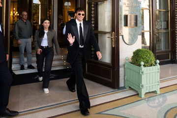 Cooper Koch quitte l'hôtel Meurice lors de la Fashion Week de Paris (PFW)