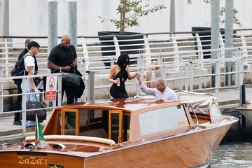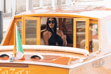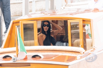 Kim Kardashian przybywa na lotnisko na 82. Międzynarodowy Festiwal Filmowy w Wenecji (Mostra)