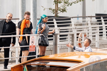 North West prend un bateau-taxi en direction du 82ème Festival International du Film de Venise (Mostra)