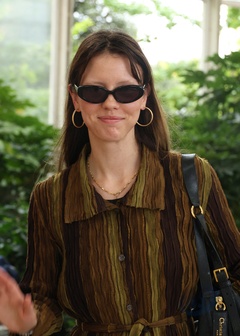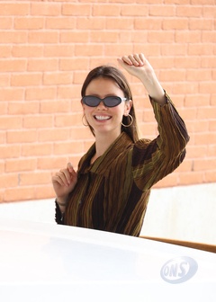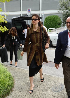 Mia Goth arrive à l'aéroport de Venise pour le 82ème Festival International du Film de Venise (La Mostra),