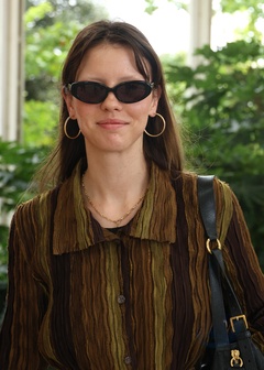 Mia Goth przybywa na lotnisko w Wenecji na 82. Międzynarodowy Festiwal Filmowy w Wenecji (La Mostra)