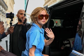 Addison Rae w stroju Jaquemusa opuszcza hotel Costes w drodze na koncert w paryskim klubie Zenith Paris – La Villette