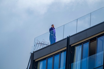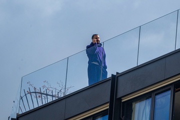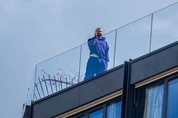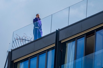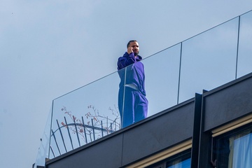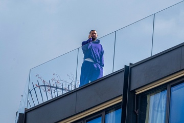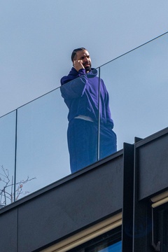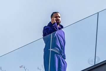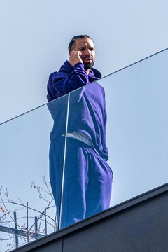 Le rappeur canado-américain Drake lors d'une longue conversation au téléphone sur un rooftop à Paris
