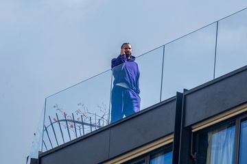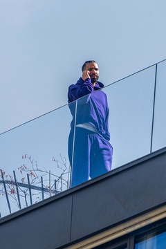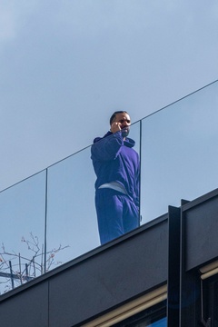 Kanadyjsko-amerykański raper Drake podczas długiej rozmowy telefonicznej na dachu w Paryżu