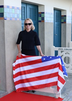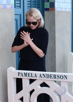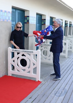 Pamela Anderson inaugure sa cabine sur les planches de Deauville lors du 51éme Festival du Cinema Américain de Deauville
