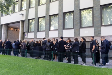 Giorgio Armani's funeral chapel, Donatella Versace arrives
