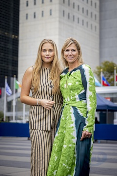 Queen Máxima and Princess Amalia pose at the UN building, New York, The Netherlands