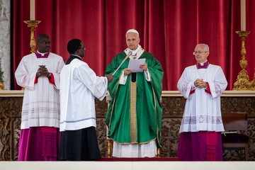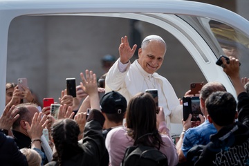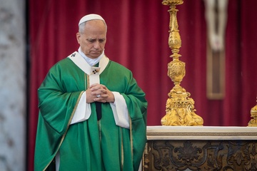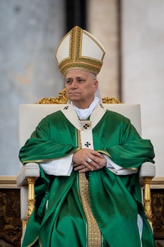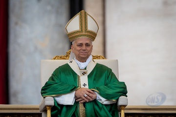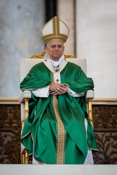 Pope Leo XIV celebrates a mass for the Jubilee of the Missionary World and Migrants in St. Peter's Square in Vatican City, Vatican, on 05 October 2025.
