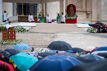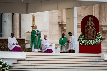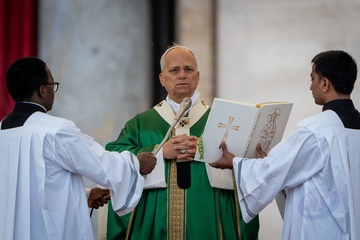 Pope Leo XIV celebrates a mass for the Jubilee of the Missionary World and Migrants in St. Peter's Square in Vatican City, Vatican, on 05 October 2025. 43