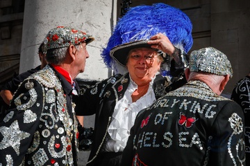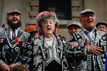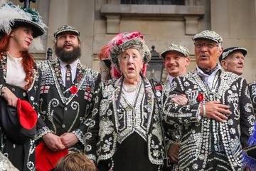 The Original Pearly Kings and Queens Association Harvest Festival at St Martin-in-the-Fields, London, UK