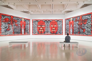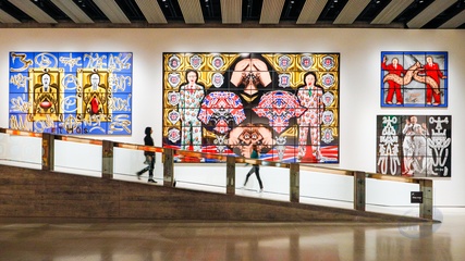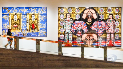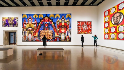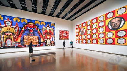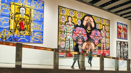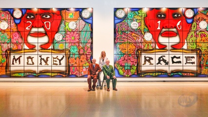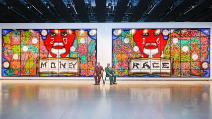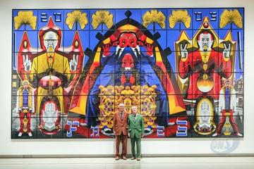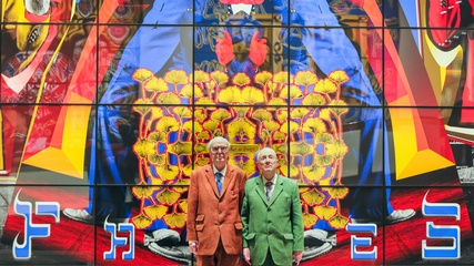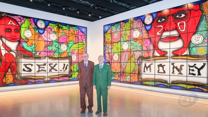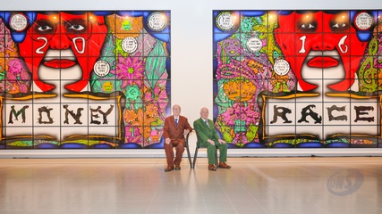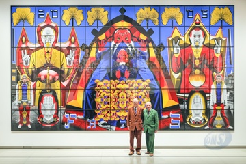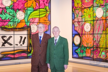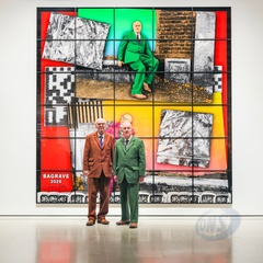Gilbert & George '21ST CENTURY PICTURES' photocall at the Hayward Gallery, London, UK