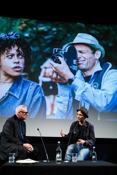 Mark Kermode and Mark Jenkin on stage at Mark Kermode in 3D on Monday 6 October 2025