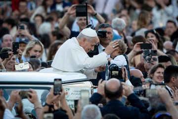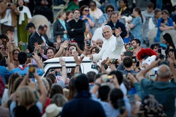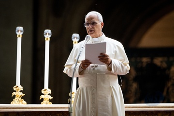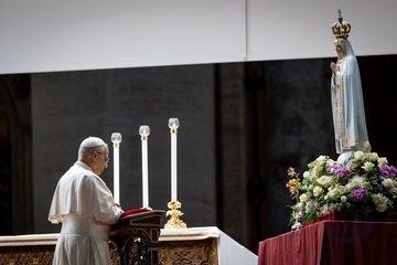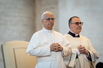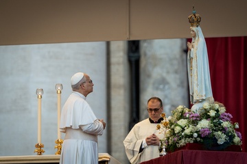 Pope Leo XIV presides over a Rosary vigil for peace in St. Peter's Square in Vatican City, Vatican, on 11 October 2025. 60