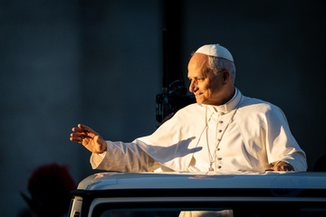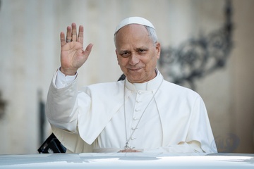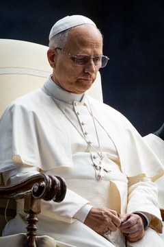 Pope Leo XIV presides over a Rosary vigil for peace in St. Peter's Square in Vatican City, Vatican, on 11 October 2025.