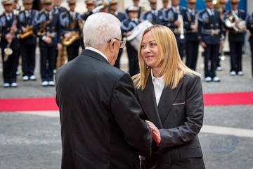 Italian Prime Minister Giorgia Meloni receives the President of Palestine, Mahmūd Abbās, aka Abu Mazen, at Palazzo Chigi in Rome, Italy on 07 November 2025.
