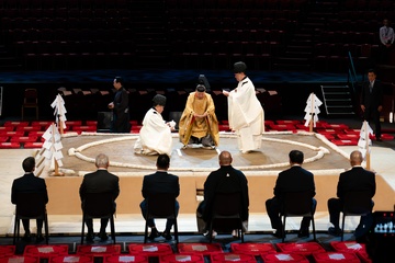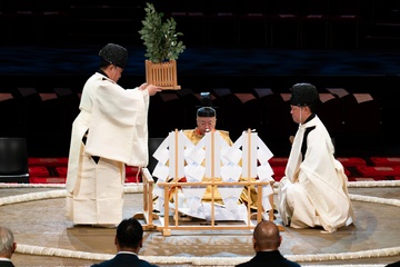 Dohyō-Matsuri (ring blessing ceremony) in the auditorium of the Royal Albert Hall ahead of the tournament commencing this evening. The Grand Sumo Tournament takes place at the Royal Albert Hall between 15–19 October 2025, marking only the second time Jap