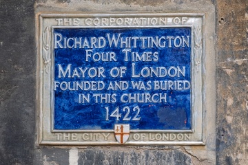 Plaques outside St Michael's Church Paternoster Royal, in college Hill , marking the location of Dick whittington in the City of London , london, UK. 2