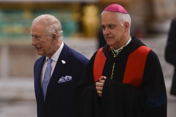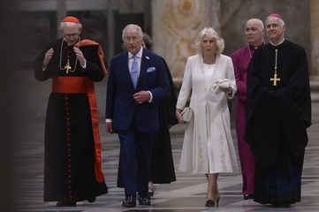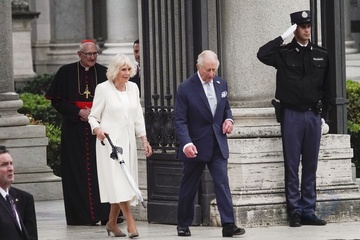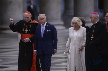 Italy, Rome, 23 October, 2025 - King Charles and Queen Camilla visiting the Basilica of Saint Paul Outside the Walls