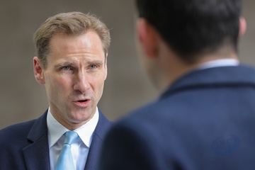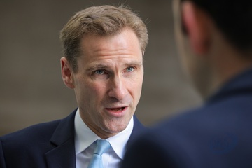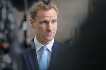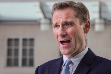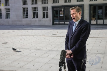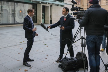 Chris Philp at the BBC for the Sunday morning media round, London, UK