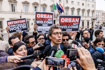 Sit-in by +Europa against the visit of the Prime Minister of Hungary