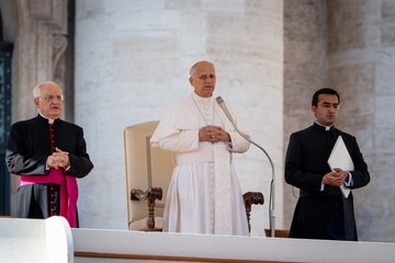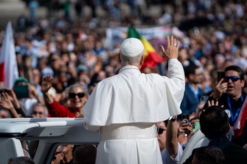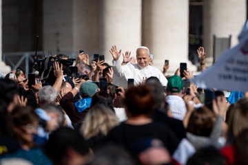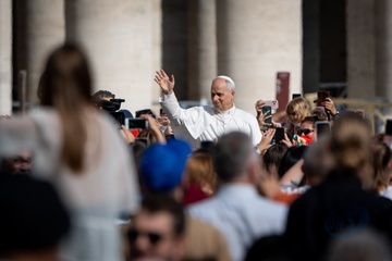Pope Leo XIV meets the students participating in the Jubilee of the Educational World in St. Peter's Square in Vatican City, Vatican, on 31 October 2025.
