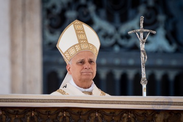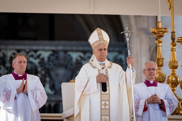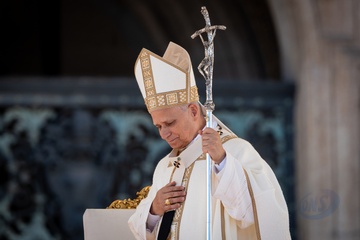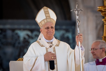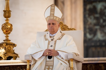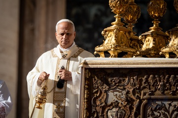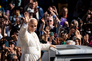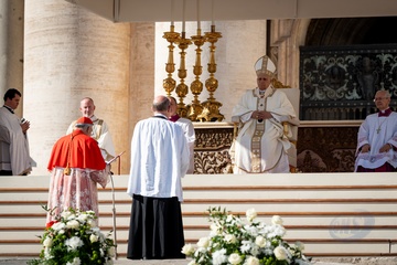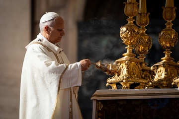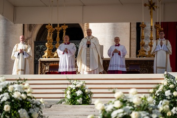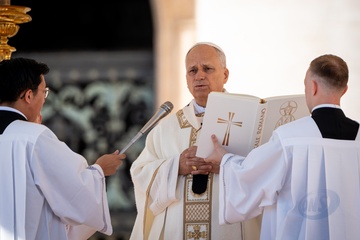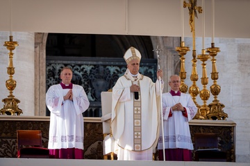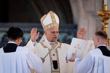 Pope Leo XIV presides over Mass with participants in the Jubilee of the World of Education on the Solemnity of All Saints, in St. Peter's Square in Vatican City, Vatican, on 01 November 2025.