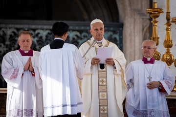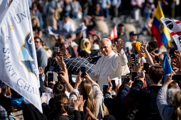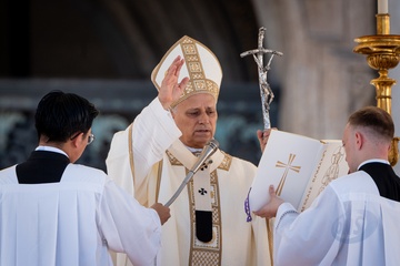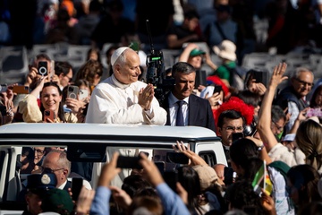 Pope Leo XIV presides over Mass with participants in the Jubilee of the World of Education on the Solemnity of All Saints, in St. Peter's Square in Vatican City, Vatican, on 01 November 2025. 37
