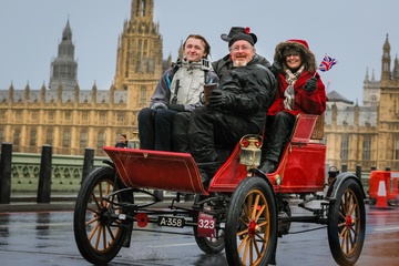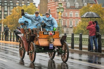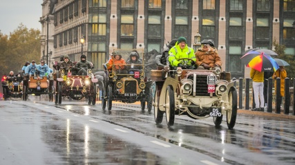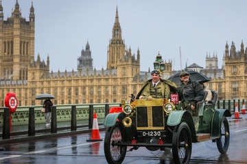 London to Brighton Veteran Car Run on Westminster Bridge, London, UK