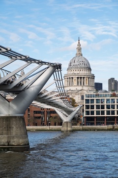 St Paul's cathedral and the Millenium bridge over the River Thames. London, UK.