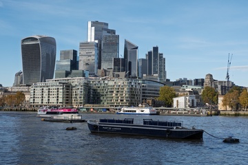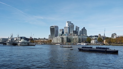 River Thames and the financial district of the City of London. London, UK.